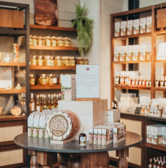 Our souvenir shop is more than a retail space, it’s a platform for local talent and responsible design. We prioritise Mauritian-made products to support small businesses and reduce the carbon footprint linked to transportation. Every item has a story. Our merchandising team collaborates closely with artisans from Chamarel and surrounding regions to co-create unique items for the shop. Some of these products are made using coffee residue from our café or even upcycled crockery that has been given a second life. This approach not only encourages circular design but also helps generate local employment and long-term collaborations.